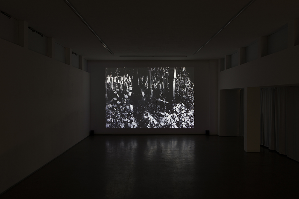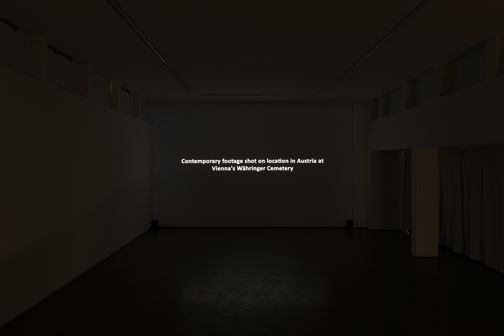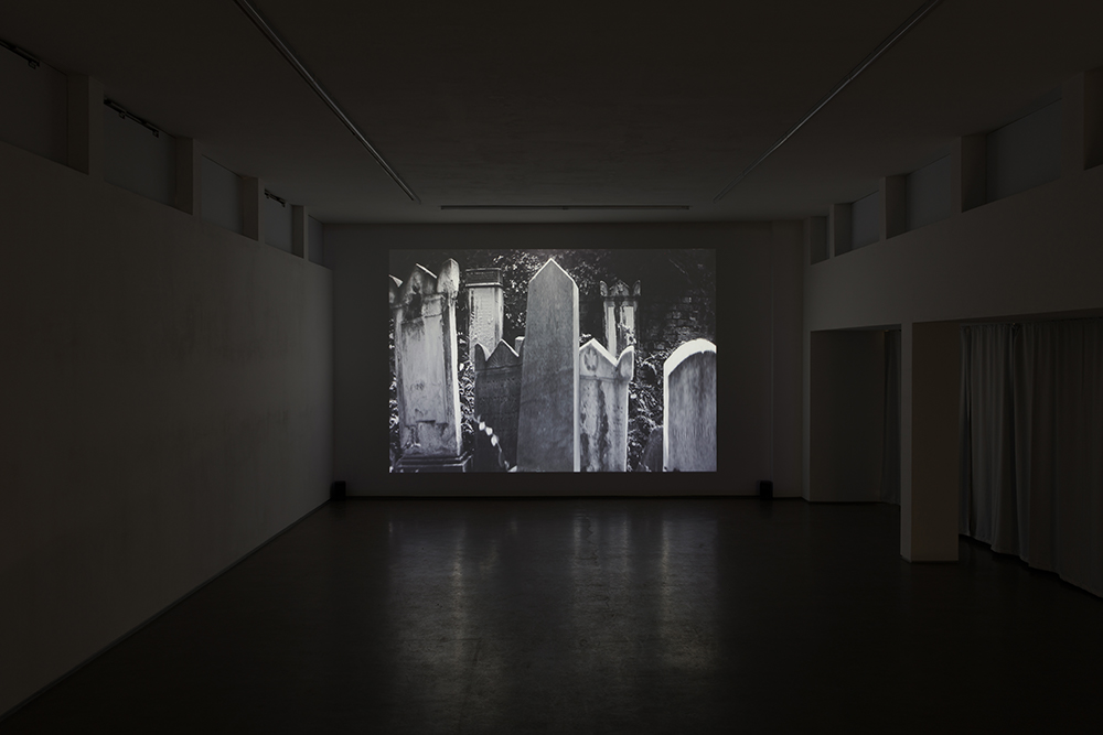 In Heller’s work, the cemetery initially seems to oscillate between pristine natural environment and historical site. Like a still life, the artist surveys the ruinous landscape of toppled and overgrown tombstones in high-resolution black and white footage. However, the sequences are presented slowed down and are thus slightly alienated, quickly creating a distance to what is being viewed. The gentle swaying of the leaves and grass not only allows the seemingly still images to be recognized as moving images, they also create a latently eerie effect. Underlying Heller’s imagery is an ever-so-slightly altered sound continuum of gentle, lively birdsongs, which contradicts and is at odds with the slowed-down movements of the leaves and grass hanging over the graves, thus dismantling more and more the sequences’ initial poetic-documentary impression.