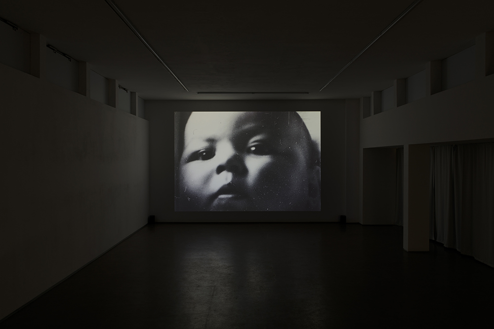 Singing in Oblivion thus come across as an attempt to capture and preserve that place from decay and fleetingness. On the one hand, Heller alludes to the referential, indexical power of the photographic image, to the inscribing of reality as a photochemical trace or imprint. On the other hand, from the middle of the film onward, the artist allows a decidedly kinetic dimension to insert itself into the filmic proceedings. The connection between reality and image seems increasingly decoupled. Heller no longer uses images to depict something, but facilitates in making their inherent rhythm and interference visible. Images begin to detach from one another, to appear in rapid sequence, even to fall into one another. Non-images and dark sequences throw the gaze back at the viewer. As if the filmic were modeled out of the dark, the viewer encounters grass, leaves, but also a pulsating combination of objects such as chains and fabrics, only to quickly slip away from view again. In the second half of the film, however, Heller not only opens up a more abstract space clearly defined by the language of the material, she also embeds found glass negatives into the filmic occurrences, which show people and family scenes of undetermined provenance, evoking potential past moments of Jewish life. In some sequences the protagonists even seem to make eye contact. At the end of the film, where an alternation of light and dark almost creates the impression of the film breathing, a man and a woman appear looking lovingly at a (their) baby. And then, in the final image, one sees an (that) infant who, in an almost Brechtian sense, looks directly out of the film at the viewer—in a questioning, challenging, even accusatory manner.