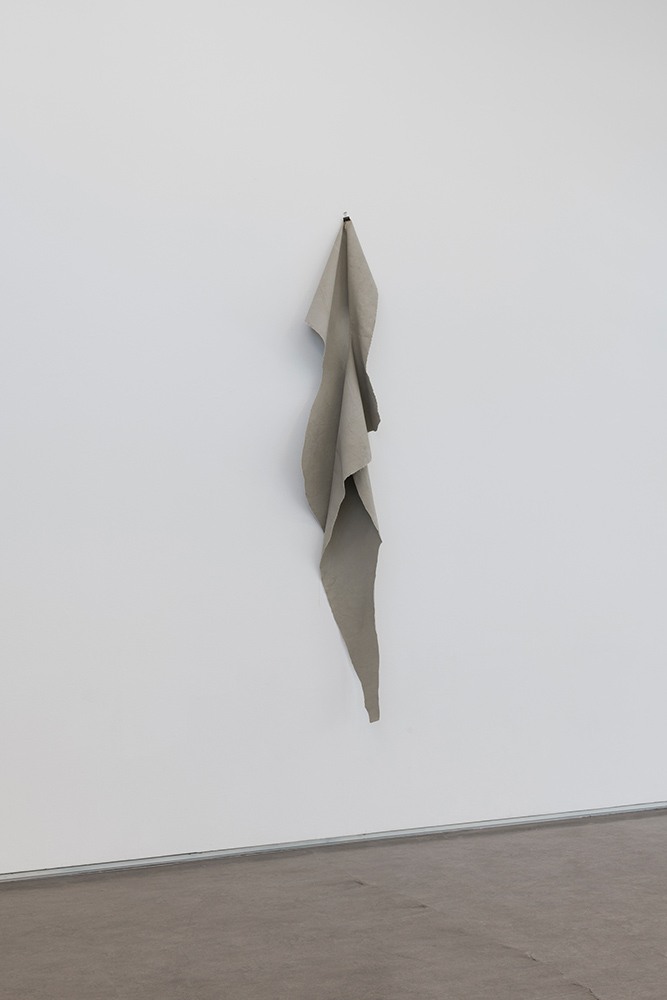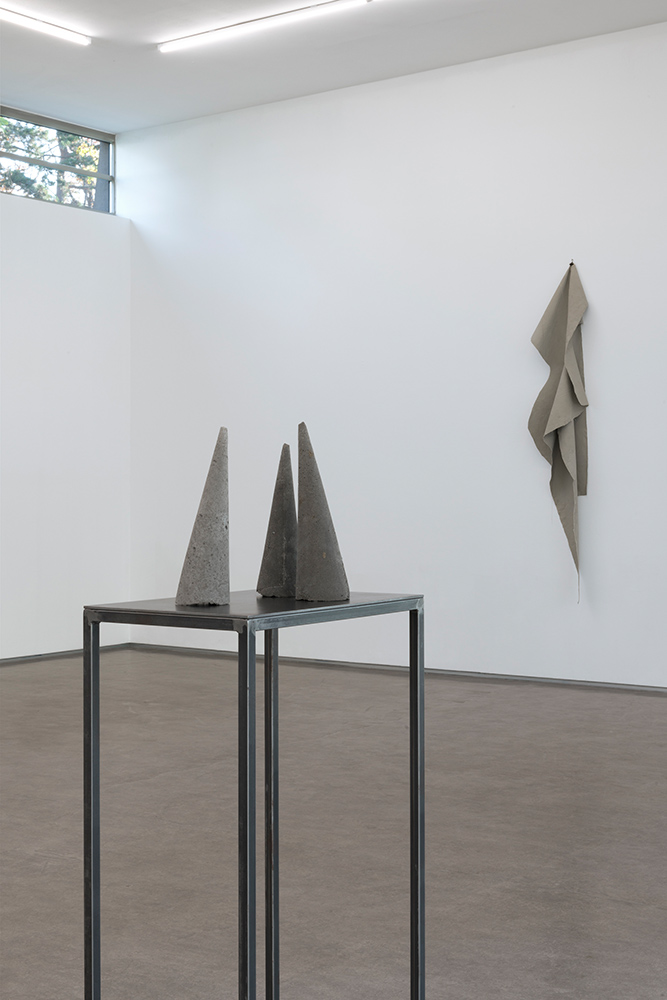 In his works, Biggio uses not only unusual materials (ashes and clay dust), but the material status of his sculptures and forms is highly precarious. The materials, which always also have an elemental quality, might also change or lose their present form again. The precarious status of the sculptural form is particularly evident in